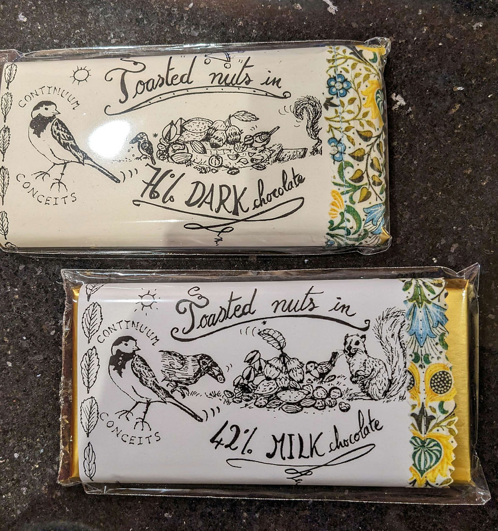 All the Continuum conceits chocolates and gift products are made using the freshest, finest, local and organic when possible, ethical, sometimes fairtrade ingredients. All confections are made in very small batches and hand-finished. Couture (sewn) chocolate – literally, as the fabrics are sewn onto the tablettes wrappers